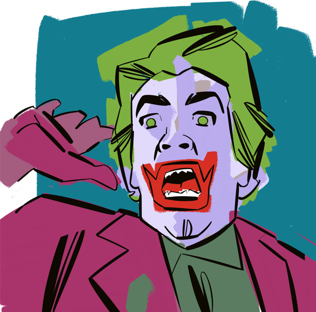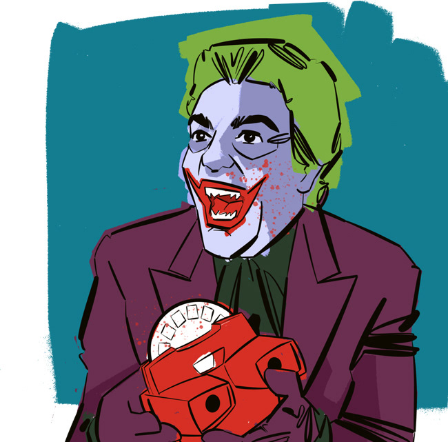 A series of portraits of Cesar Romero’s portrayal as the clown prince of crime in the 1966 Batman TV Show.