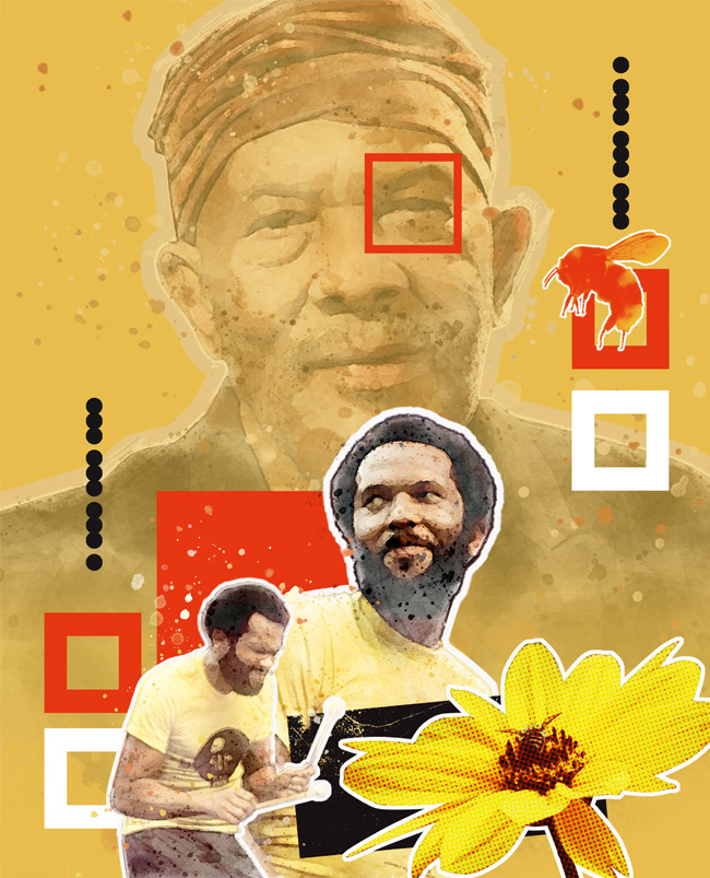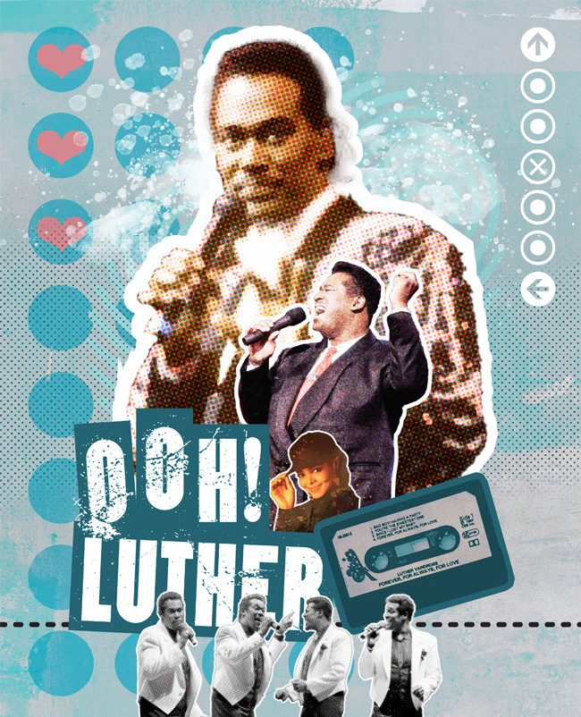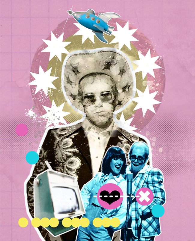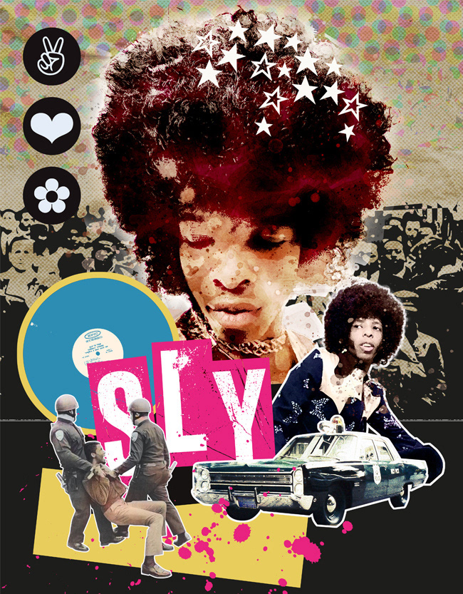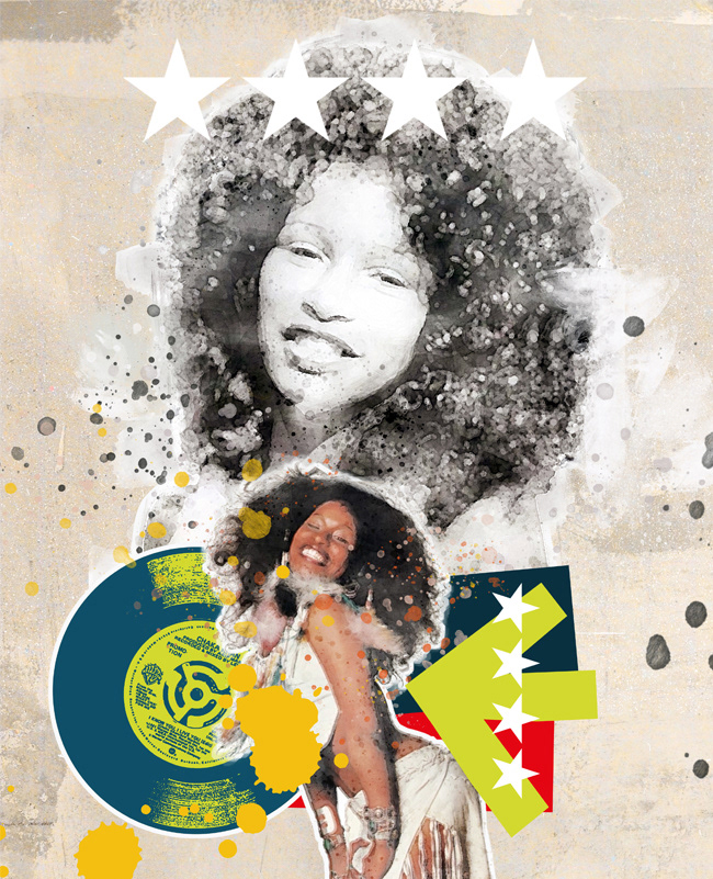 A series of digital collage illustrations celebrating some of the world's greatest musicians. From top to bottom: Roy Ayres; Chaka Khan; Elton John; Luther Vandross; Sly Stone
