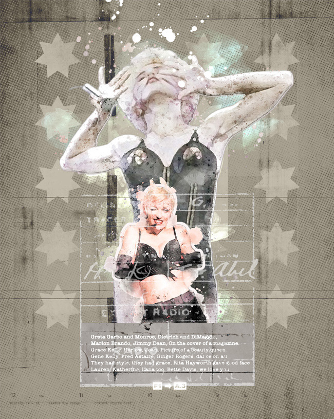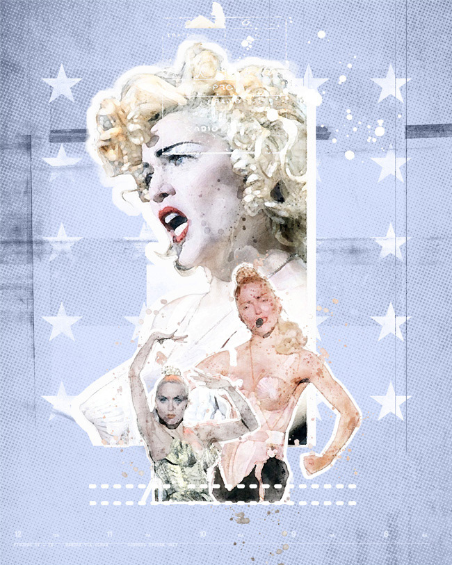 A series of digital collage illustrations celebrating great musicians. Madonna Louise Ciccone is an American singer, songwriter, record producer, and actress, known for her continual reinvention and versatility.
