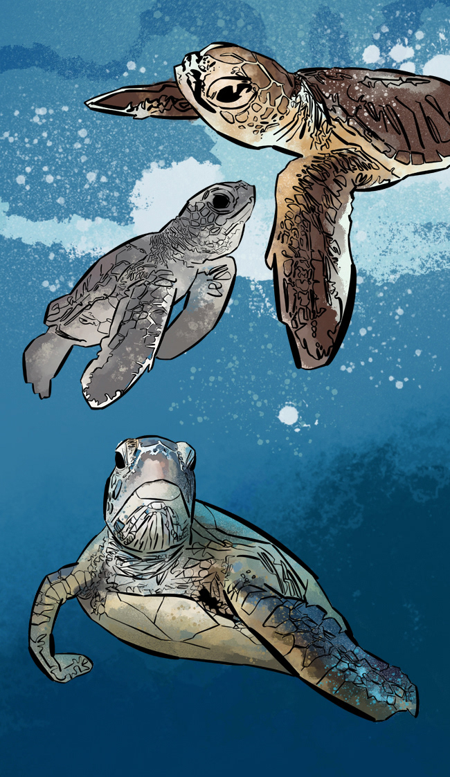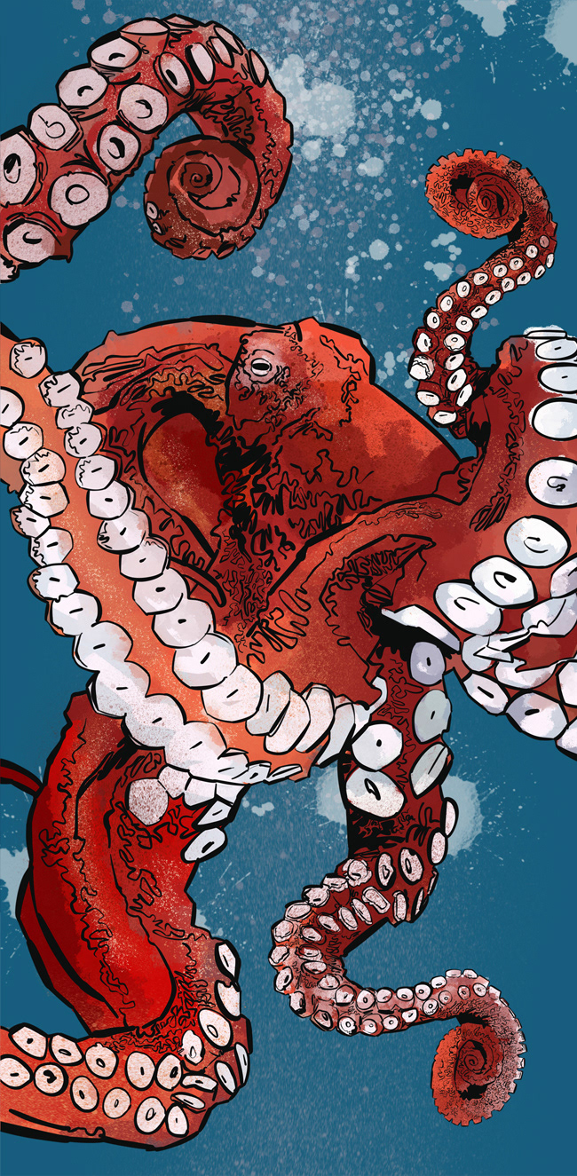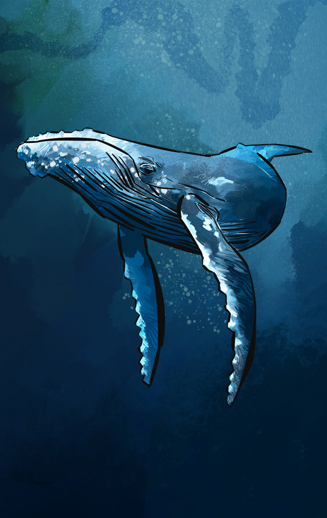 Illustrations exploring marine life and the wonders of the underwater world, ranging from octopus to humpback whales.
