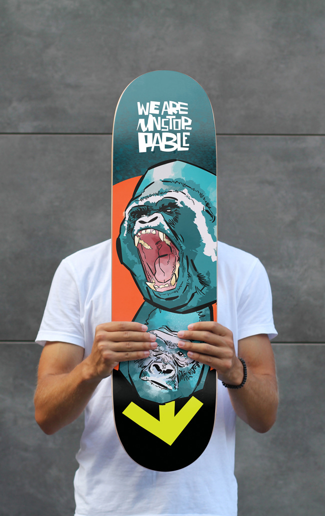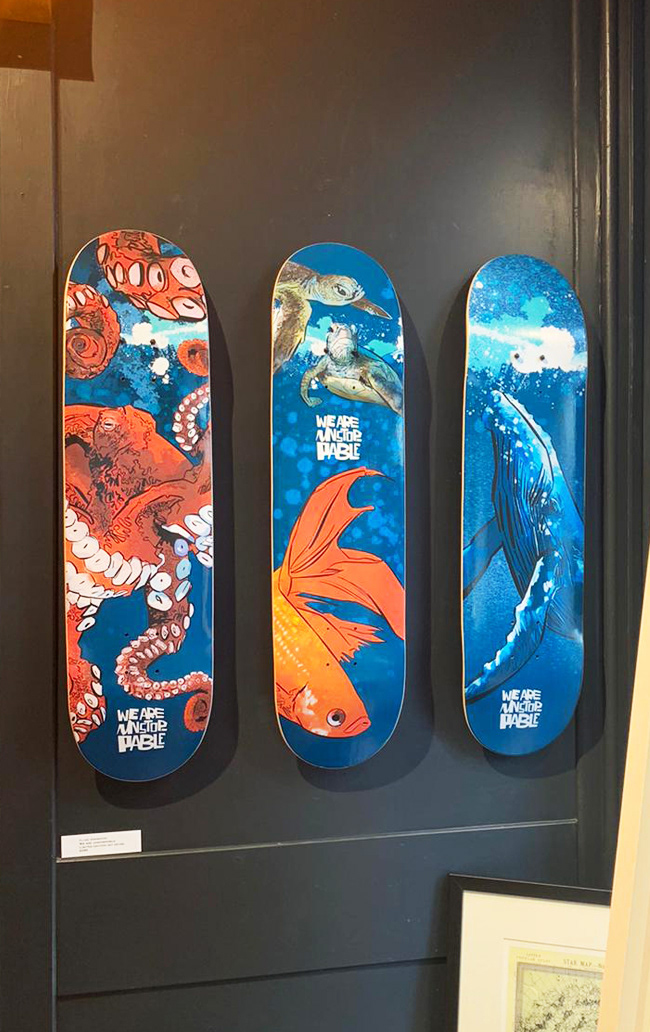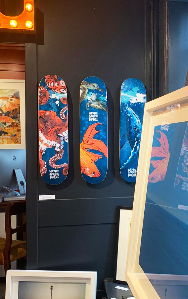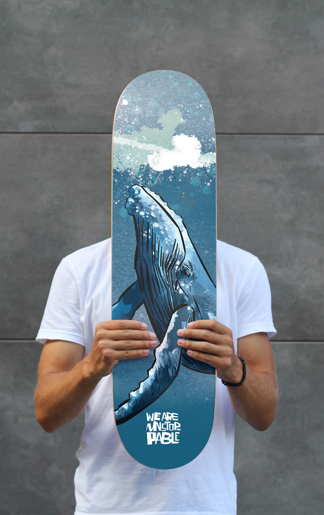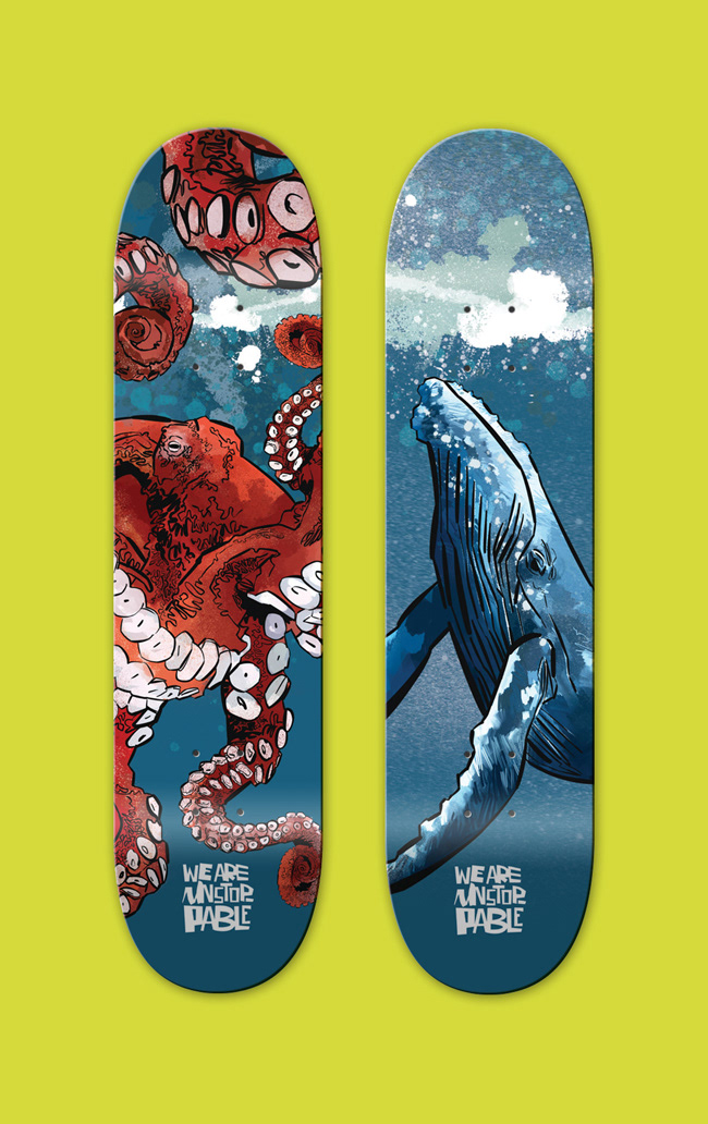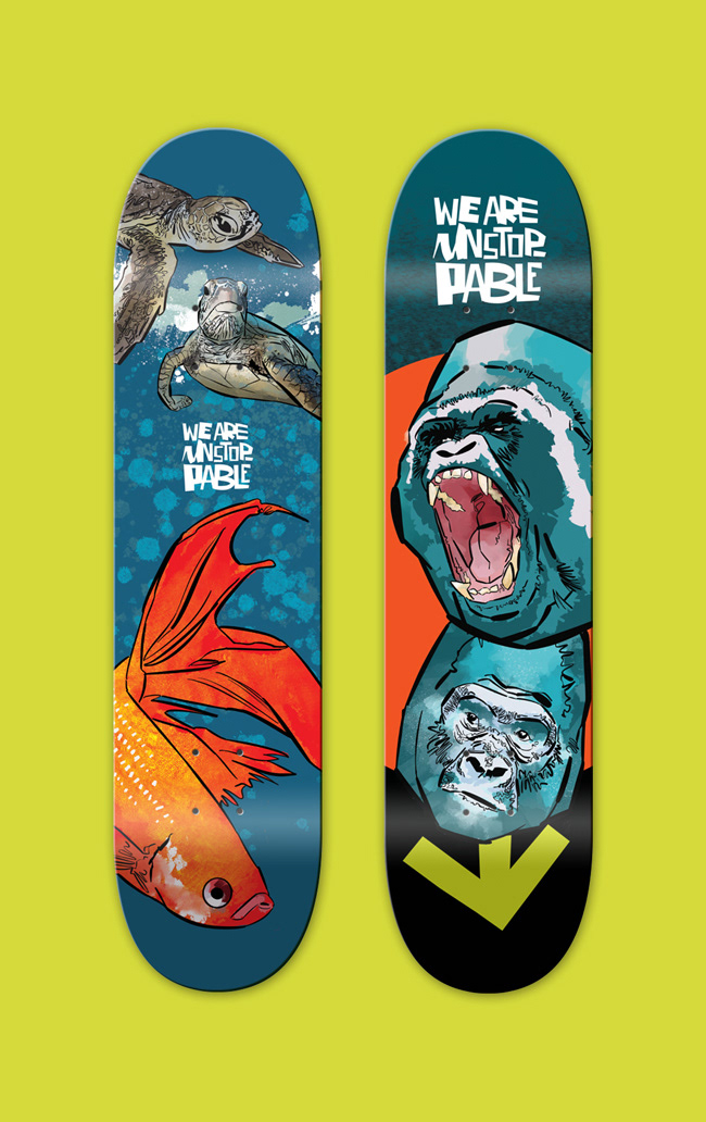 A series of skateboards designed for the TAYLOR-JONES & SON gallery. The theme was nature and the human impact on it, under the project title ‘We are unstoppable’.