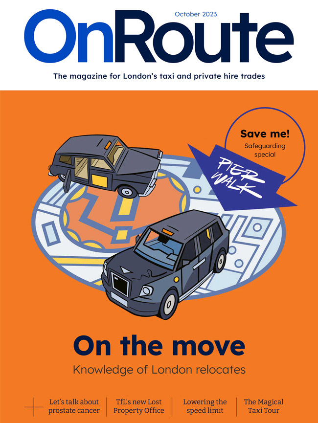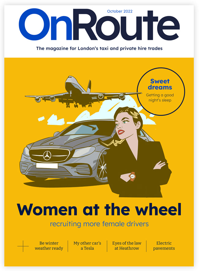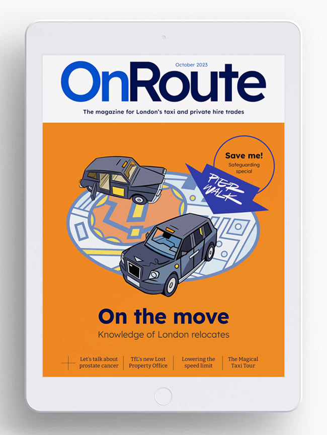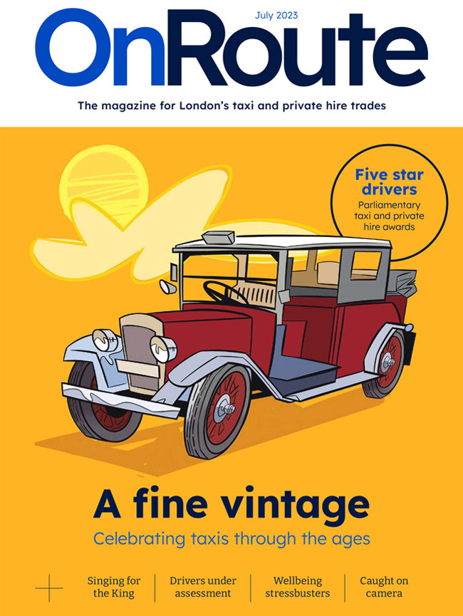 Cover illustration for Transport for London's On Route magazine, the quarterly publication for London’s taxi and private hire trades.