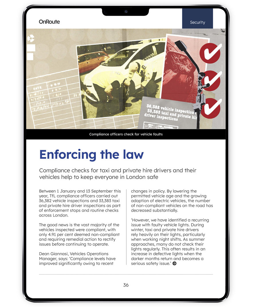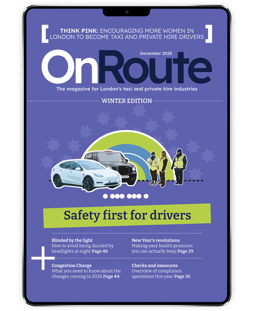 On Route is a digital only magazine produced for Transport For London with content aimed at Taxi and Private Hire vehicles. Cover and feature illustrations by Clive Johnston.